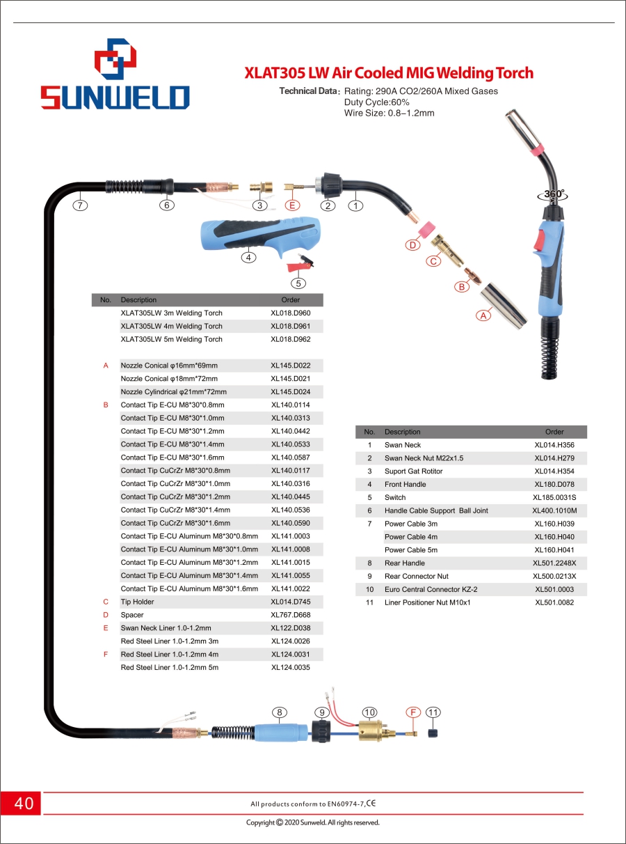 | XLAT305 LW Air Cooled MIG Welding Torch |