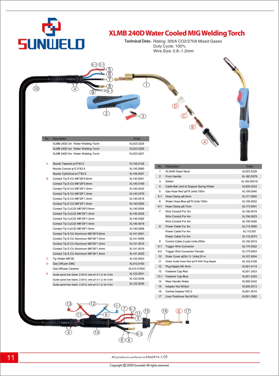 XLMB 240D Water Cooled MIG Welding Torch |