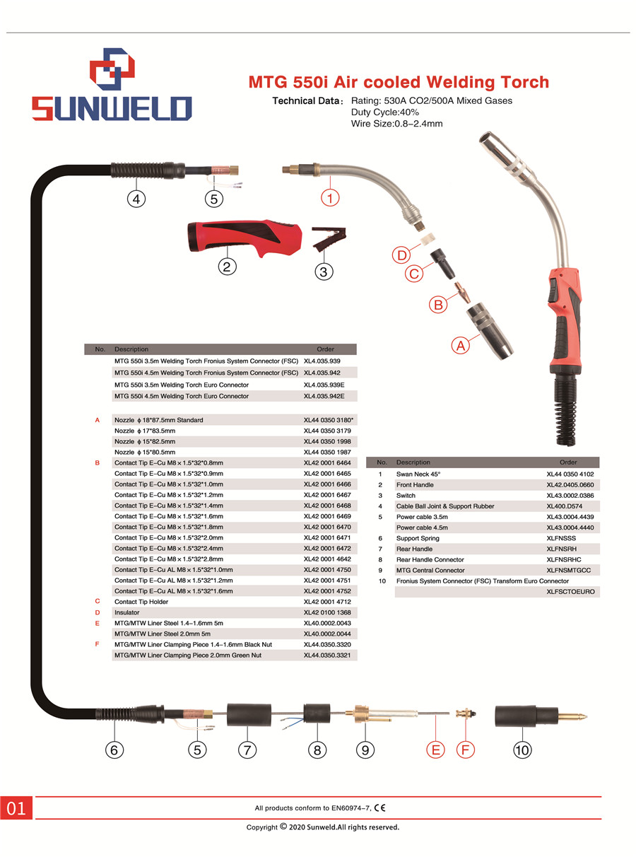 MTG 550i 4.5m Welding Torch Fronius System Connector (FSC) |